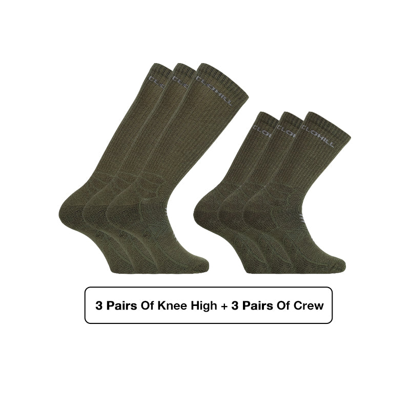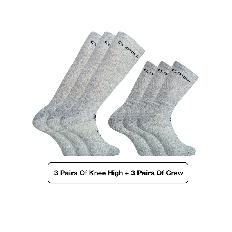 Step into winter with Clohill Alpaca Knee High & Crew Socks Bundle, designed for unmatched warmth and versatility. This 3+3 pack includes three pairs of knee-high socks for full coverage and three pairs of classic crew socks—perfect for daily wear, work boots, or cozy evenings indoors.